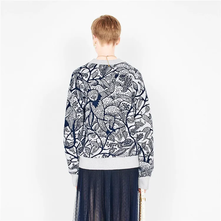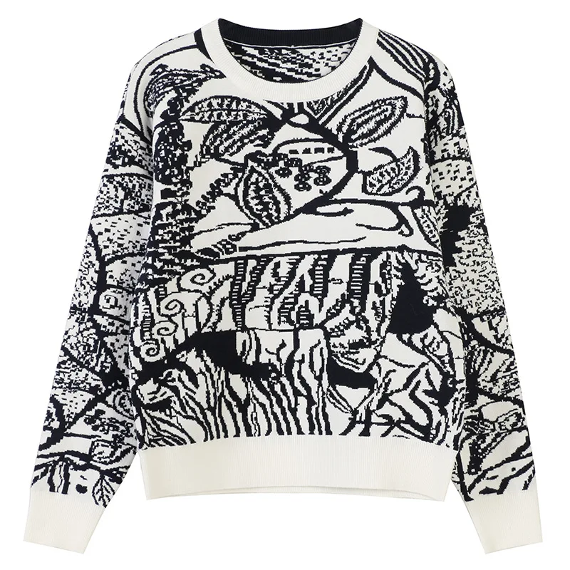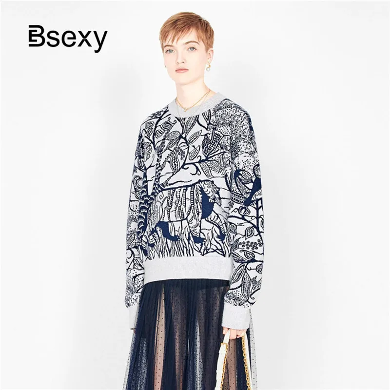 Runway Designer Sweaters 2019 Autumn Winter Vintage Women Round Neck Animal Tiger Print Knitted Pul