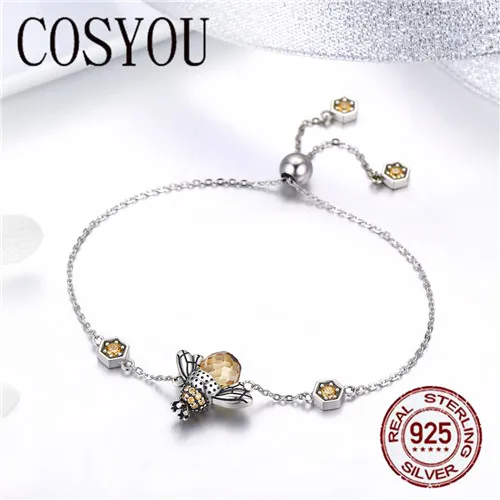 REVIEW TOP SELLER COSYOU Genuine 100% 925 Sterling Silver Dancing Honey Bee Chain Link Women Bracelet Crystal Big Sto