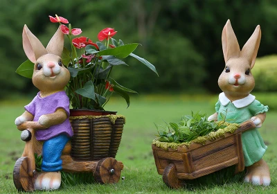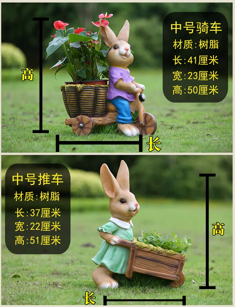 Rustic artificial animal sculpture resin rabbit craft outdoor decoration 2pcs/lot garden decor home
