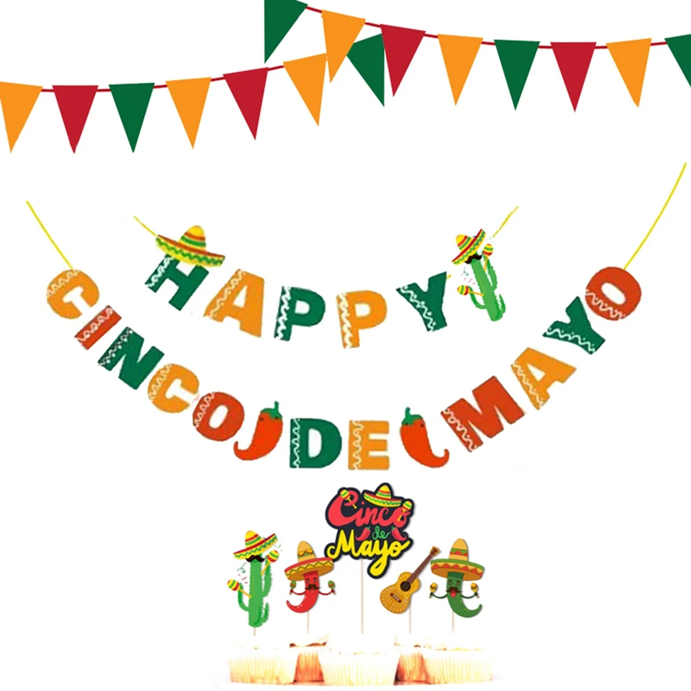 1 Set New Mexican Banner Garland Cake Topper Cupcake Toppers Wedding Flag Decorations For Themed Pa