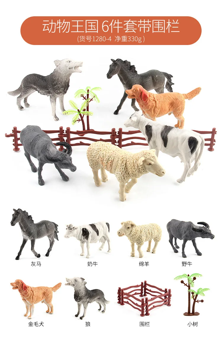 Review Top Foreign Trade Hot Sales Animal World Ranch Animals Scene 6 Pieces Plastic Ornament Garage Kit Model