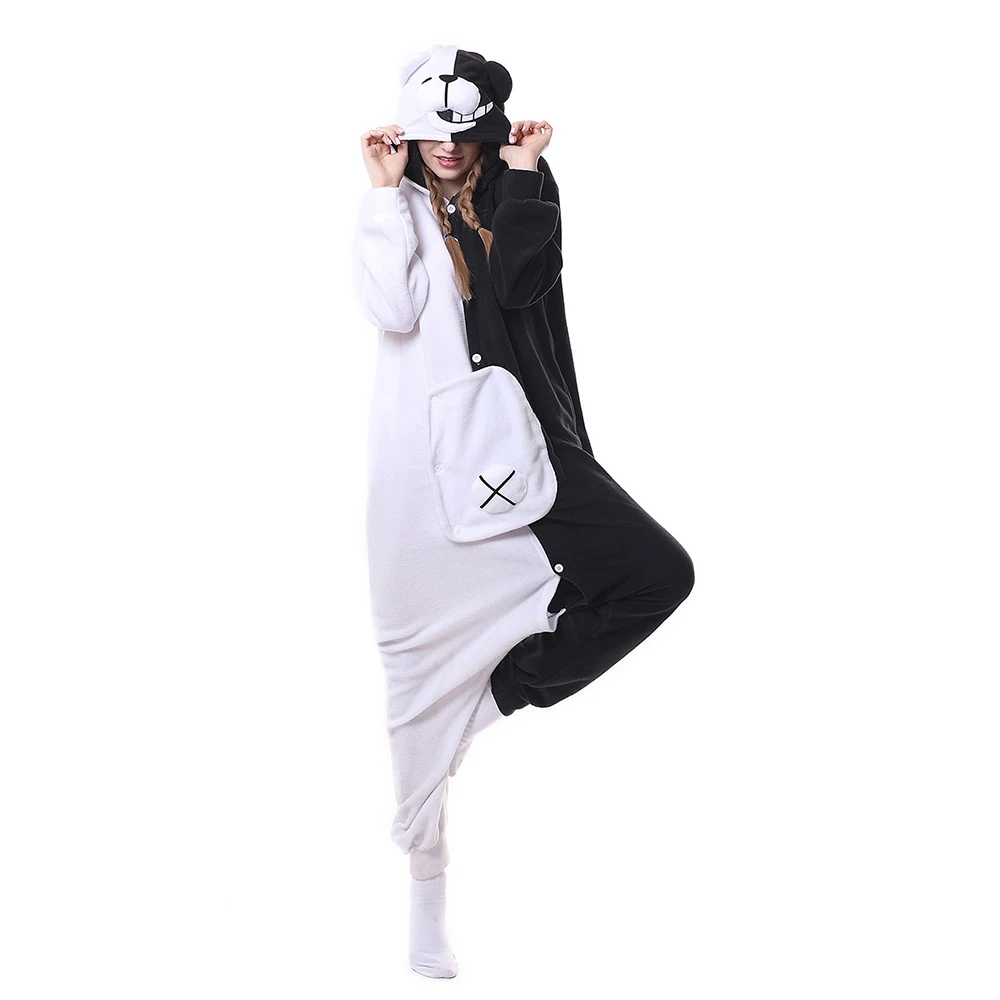 Adult Pajamas Animal Cosplay Costume Black White Bear Onesies Unisex Clothing Romper Pajamas for Ad
