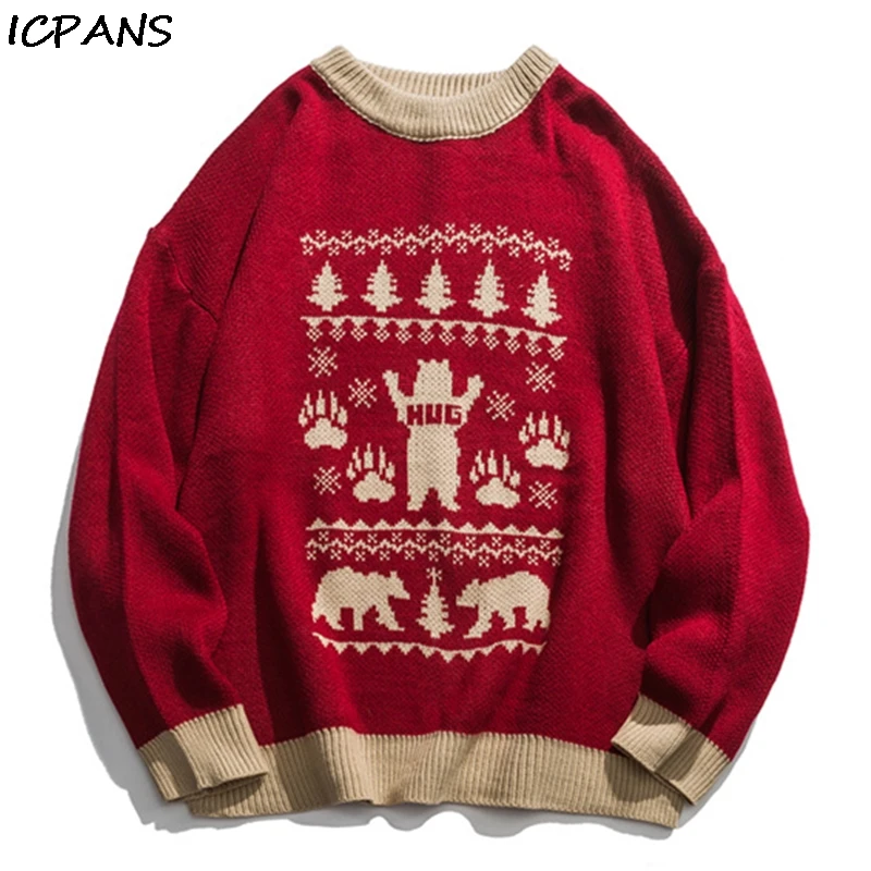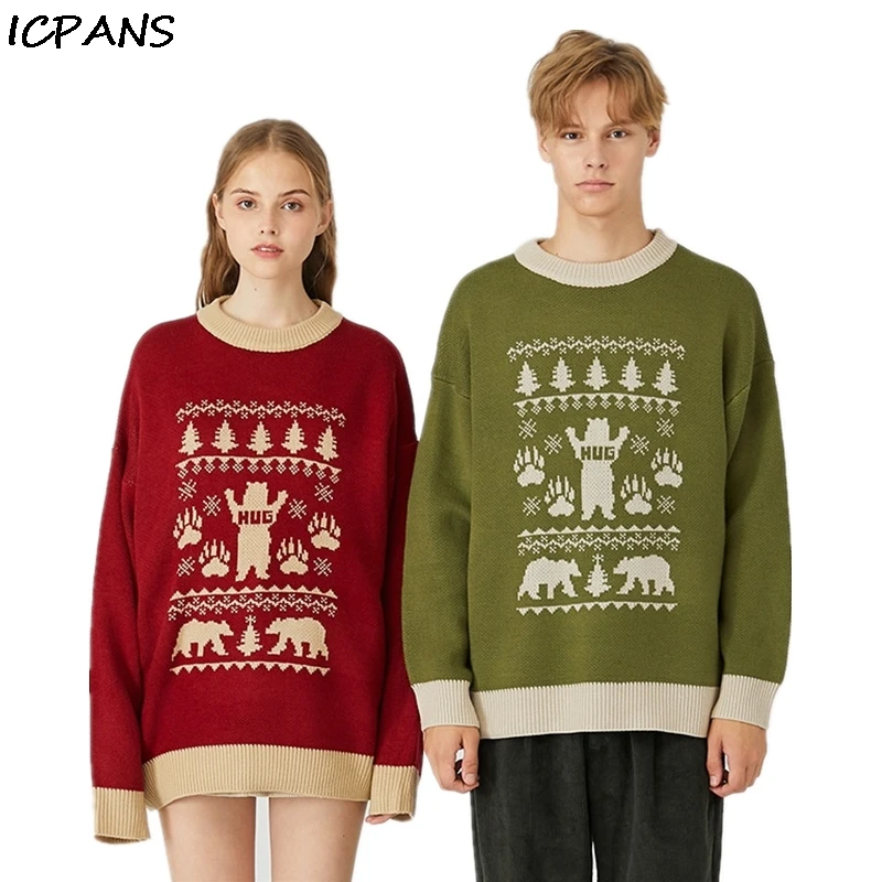 ICPANS Autumn Winter Print Bear Pullovers Couple Sweater Men Women Loose Oversize Sweaters 2019 Vin